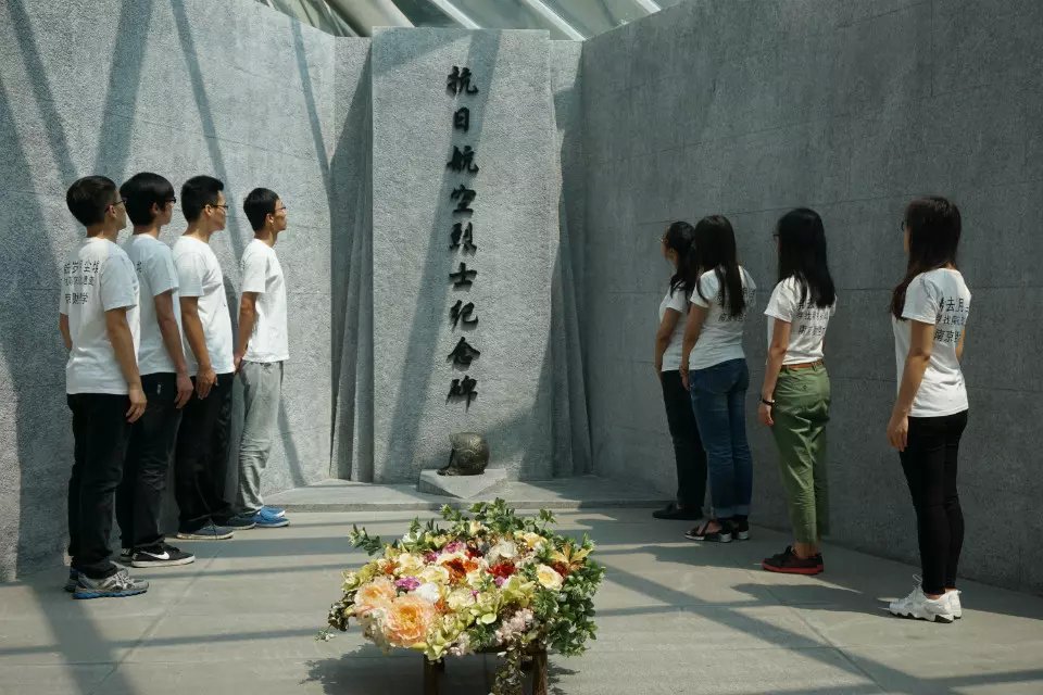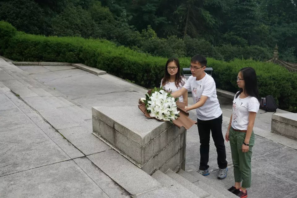 2015年7月7日,“七七事变”爆发78周年纪念日,星空官网“拂去岁月尘埃”暑期实践团队在周绍东老师的带领下赴南京抗日航空纪念馆悼念抗战阵亡航空烈士。团队成员沿着航空烈士公墓中轴线步入航空烈士公墓。在抗日航空烈士纪念碑前,小组成员举行了献花仪式,全体成员鞠躬默哀悼念。
