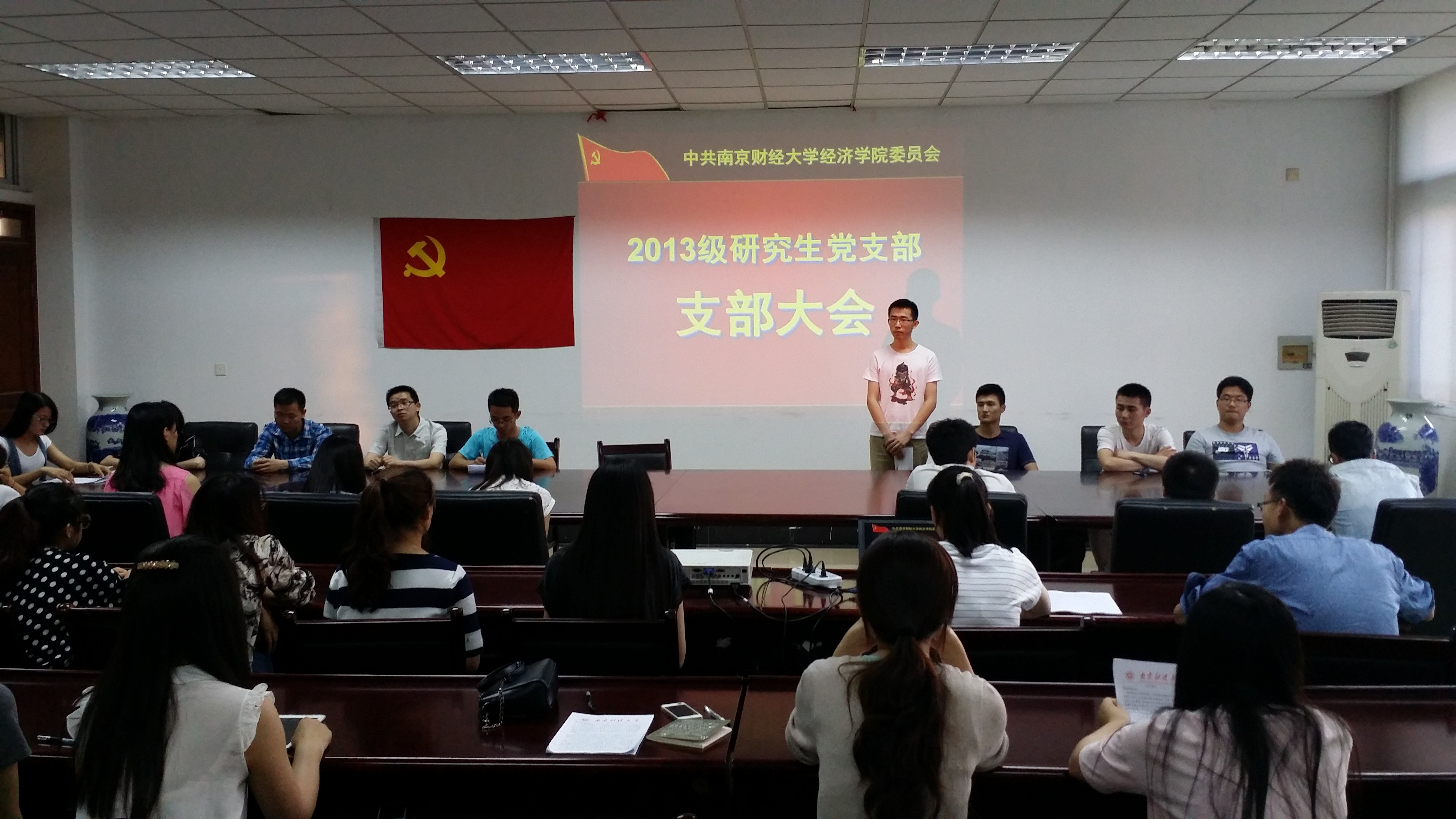 2015年5月20日,星空官网2013级研究生党支部在XK星空体育307会议室召开支部大会。机关党委书记、党委组织部副部长、党校副校长孙彬,院党委副书记郝园园,院学生第二党支部书记黄晓娟,研究生秘书王竹君等老师旁听了此次支部大会。支部大会由2013级研究生党支部书记朱盼盼同学主持,全体2013级研究生党员参加了此次会议。