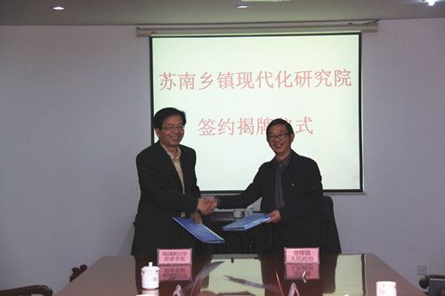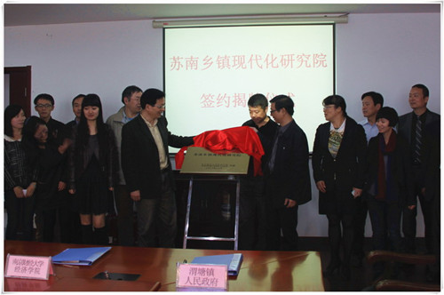 11月2日上午,由星空XKXK星空体育与苏州市相城区渭塘镇人民政府合作共建的“苏南乡镇现代化研究院”正式签约揭牌。签约揭牌仪式在渭塘镇政府会议室举行,XK星空体育党委书记胡荣华,渭塘镇镇长夏赵云共同主持了研究院的签约揭牌仪式。