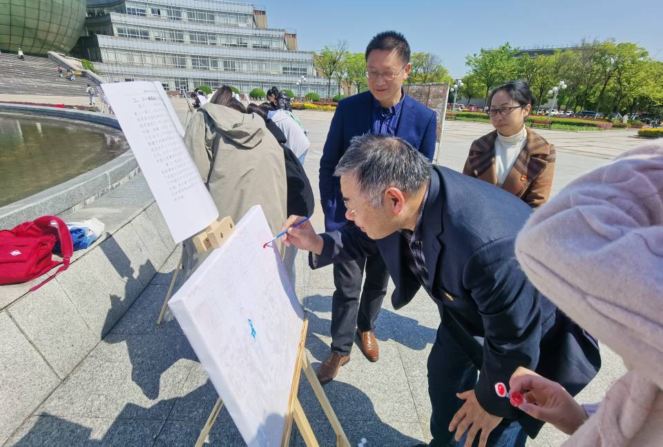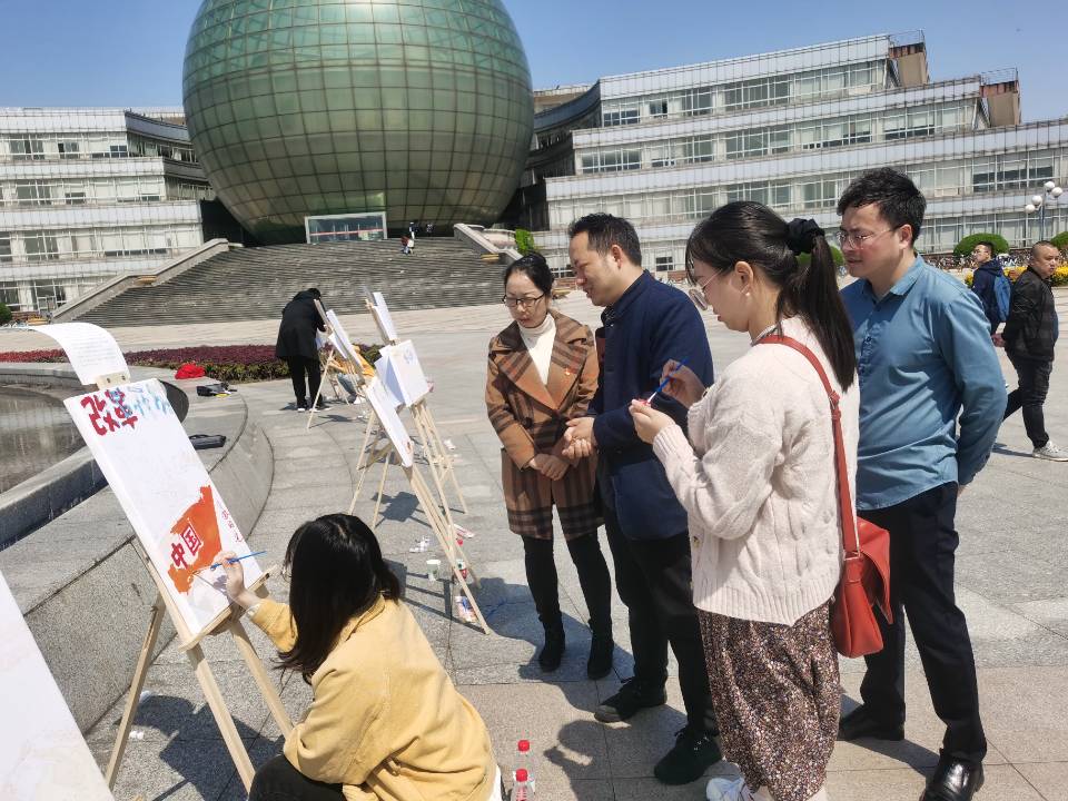 为庆祝中国共产党成立100周年, 4月9日上午,XK星空体育党委在图书馆前广场开展“指尖上的党史”党史学习教育主题党日活动。活动通过重温党史大事件和手绘油画等方式,促进党员同志和积极分子加深对党的奋斗历程和建设成果的深入了解,展现当代青年学子积极向上的精神风貌。活动由XK星空体育研究生第一党支部组织发起。XK星空体育党委书记陈耀辉,院长朱红根,党委研究生工作部副部长华凌志,XK星空体育党委副书记袁怡琨等领导和老师也来到现场与同学们共绘党史。