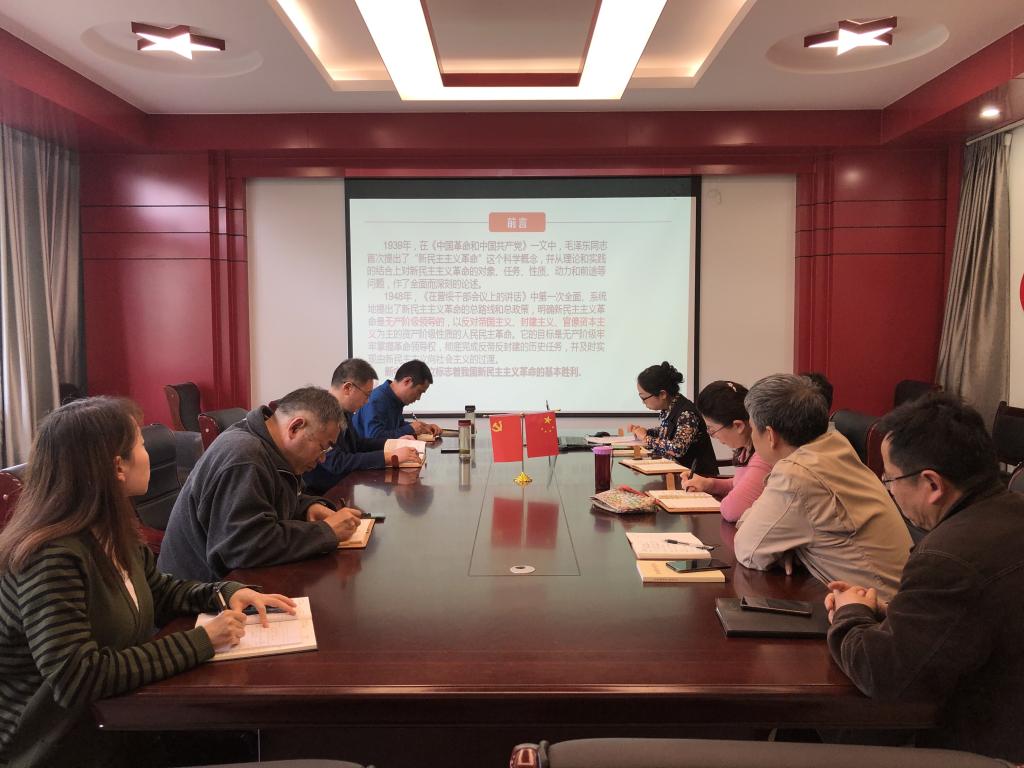 4月28日下午,XK星空体育党委理论学习中心组学习会暨党史学习教育之新民主主义革命历史专题学习会在学院支部书记工作室召开。本次专题研讨会由学院党委副书记袁怡琨领学,学院书记陈耀辉、院长朱红根、副院长尹敬东、副院长韩中、副院长崔向阳等8名学院中心组成员全体出席会议。