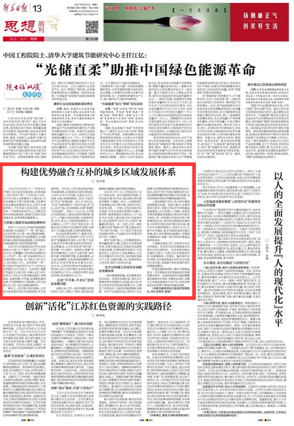 8月24日,星空官网院长朱红根教授在新华日报《思想周刊》第220期上发表了题目为《构建优势融合互补的城乡区域发展体系》的署名文章。