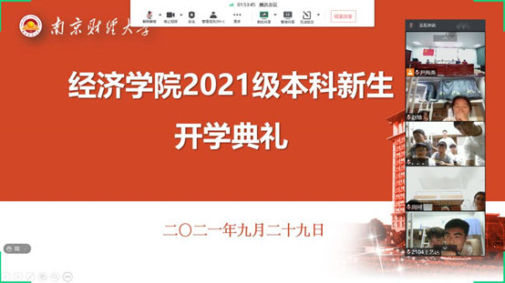 9月29日晚,星空官网2021级新生开学典礼以腾讯会议形式线上直播。院党委书记陈耀辉、院长朱红根、党委副书记袁怡琨、副院长崔向阳、尹敬东、韩中、学工秘书尹海燕、分团委老师兼辅导员梁少颖等参会。党委副书记袁怡琨主持典礼,2021级全体新生在各自的宿舍观看直播,线上参与。