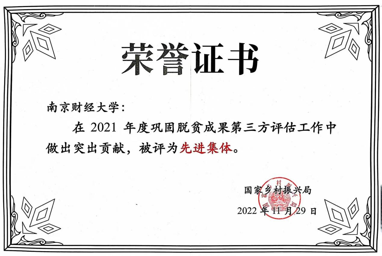 会上表彰了一批在2021年度巩固脱贫成果第三方评估工作中做出突出贡献的先进集体和先进个人。朱红根教授团队被授予“先进集体”荣誉和“先进个人”称号。