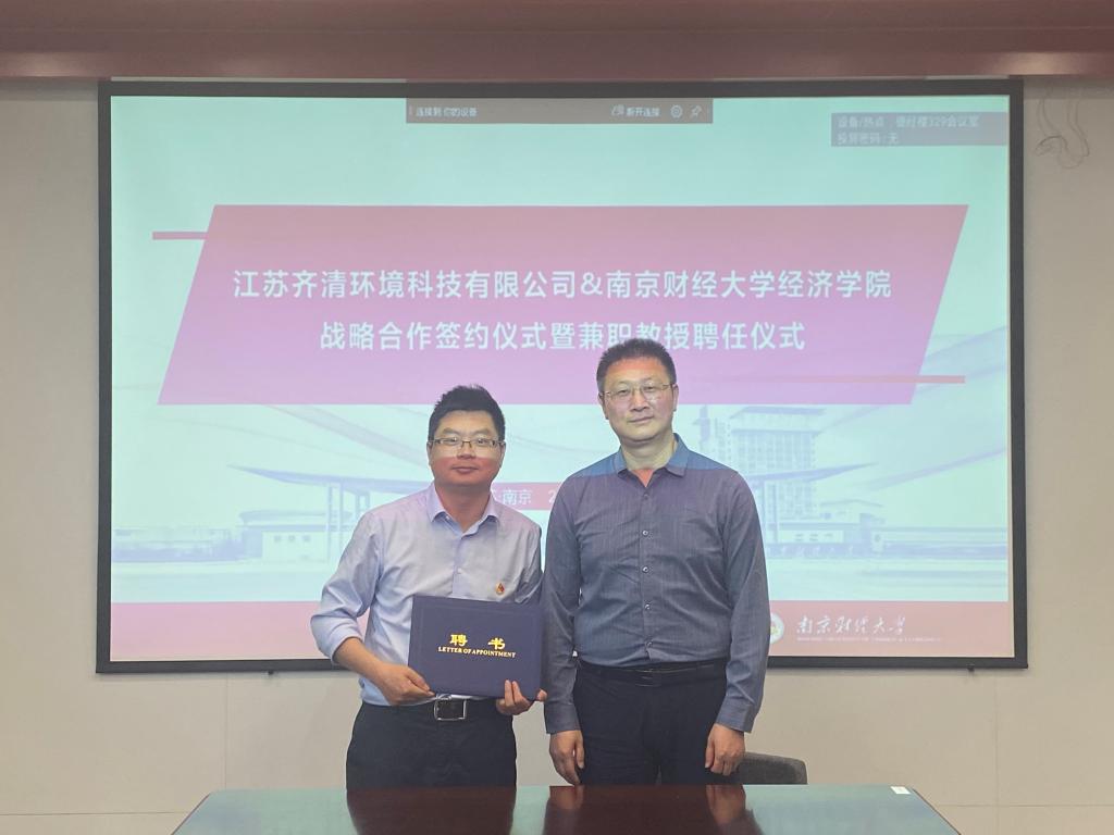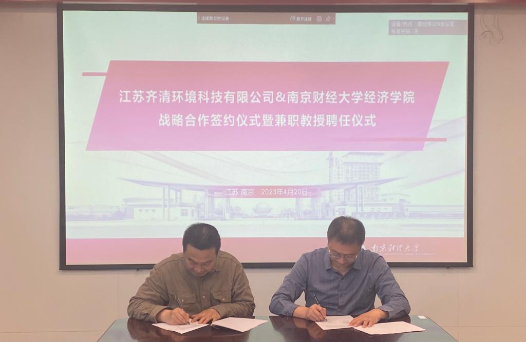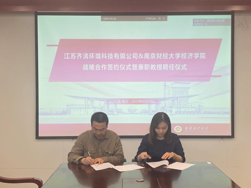 最后,朱红根院长与王志良董事长签署了《星空XKXK星空体育与江苏齐清环境科技有限公司战略合作协议》《星空XKXK星空体育与江苏齐清环境科技有限公司实习就业基地共建协议》,并聘任王志良董事长、李建军副总经理为绿色经济发展研究院兼职教授。根据协议,双方将在碳经济与管理交叉学科人才培养、师资队伍建设,碳经济理论与实践研究,流域环境治理、生态环境政策咨询,实习就业基地建设等方面开展深入合作。