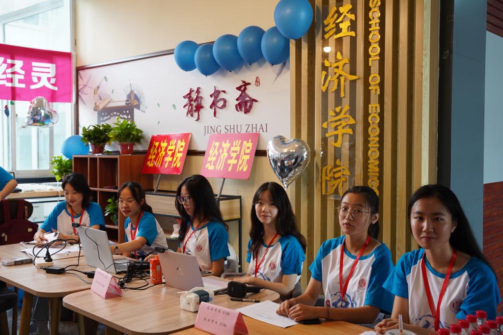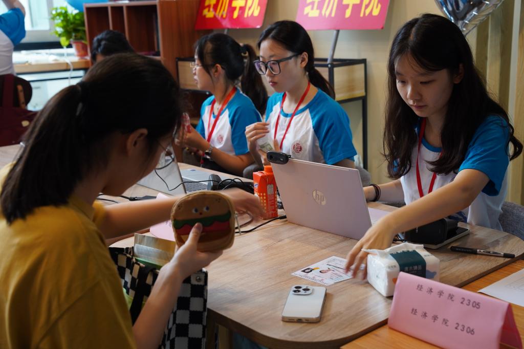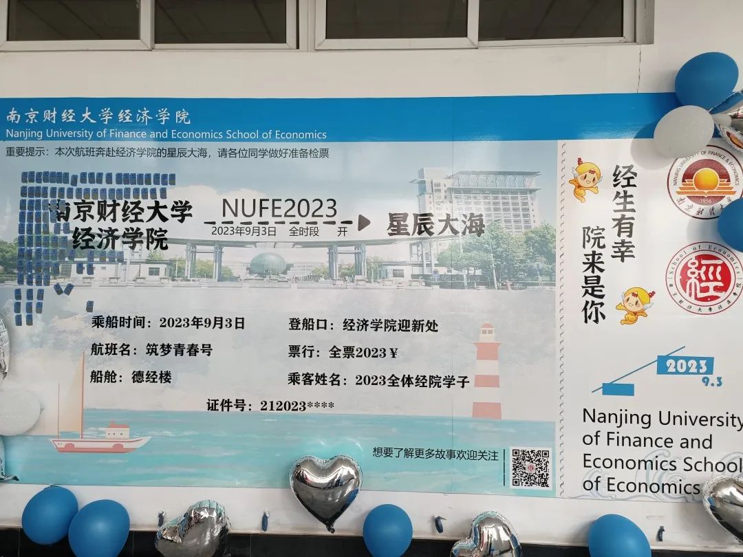 定制礼物,温暖满满。学院设置了从南财XK星空体育启航驶向星辰大海的“逐梦青春号”船票展板,学院的专业楼德经楼为船舱、新生们的学号为证件号,寓意经院学子们登船开启为期4年的学习时光,乘风破浪,扬帆远航,逐梦新征程。学子们在船票票根写下求学寄语并签名后粘在迎新墙上,更增强“榜上有名”的仪式感。学院还精心为新生准备了富有经院特色的入学纪念品,包含“小经灵”钥匙扣、船票票根、南财明信片、新生防诈骗指南以及定制帆布包等,通过温馨礼物的方式密切学生和学院的联系、培养爱校情怀,可谓仪式感满满!新生们纷纷与写满学院领导老师点赞留言的朋友圈打卡框、学院吉祥物“小经灵”和南财地标图书馆“大球”合影,开启缤粉多彩、有滋有味的大学生活。