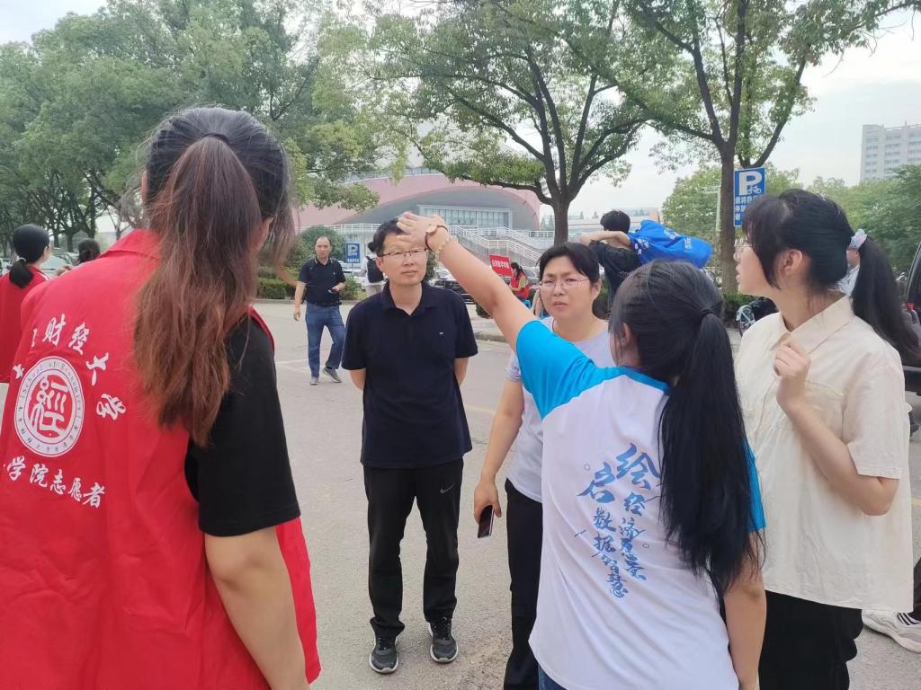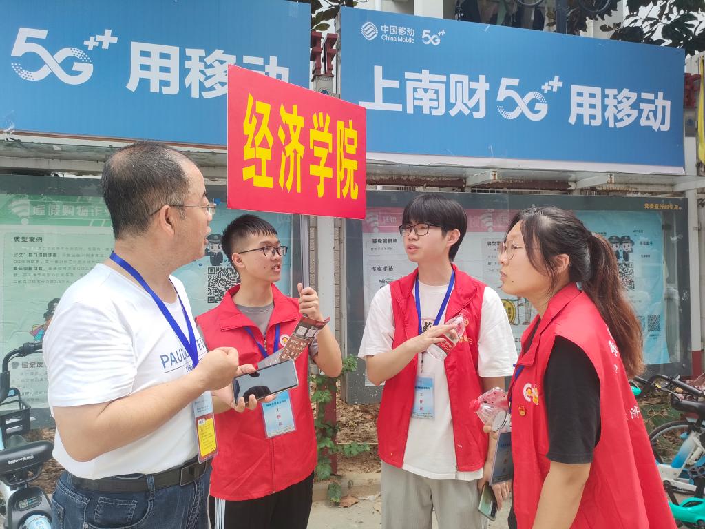 领导亲临,慰问关心。上午,学院党委书记张圣兵、院长朱红根、党委副书记贾亦璞及其他院领导早早来到学院迎新点了解新生接待工作与准备进展,认真查看新生报到每个环节,亲切慰问一线工作人员,并与现场师生志愿者、辅导员一起参与迎新工作。院领导们与新生亲切交谈,热情问候报到新生并为其耐心答疑,为绿色通道学生送去暖心大礼包,与大家亲切合影,欢迎他们在南财开启人生崭新篇章。今年的新生中有两名同学在报到当天迎来生日,学院为他们准备了生日蛋糕、贺卡和礼物,学院党委书记张圣兵、副书记贾亦璞到宿舍现场送上祝福。如沐春风的关怀驱散了新生们初来乍到的距离感,为新生们尽快融入XK星空体育大家庭及时注入“强心剂”。