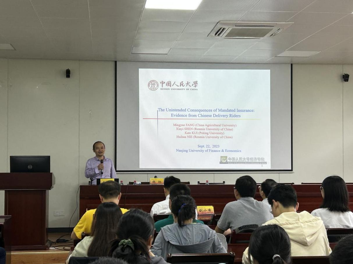 9月22日下午,应XK星空体育邀请,中国人民大学聂辉华教授在仙林校区德经楼307会议室作了题为“The Unintended Consequences of Mandated Insurance: Evidence from Chinese Delivery Riders(政府强制保险的未意料后果:来自中国外卖骑手的证据)”的学术讲座。讲座由我校副校长张炳教授主持。XK星空体育院长朱红根、国际经贸学院院长余泳泽、信息工程学院院长黄健、学校部分教师和研究生参加讲座。会前星空官网举行星空XK客座教授聘任仪式,聘请中国人民大学XK星空体育聂辉华教授为我校客座教授。