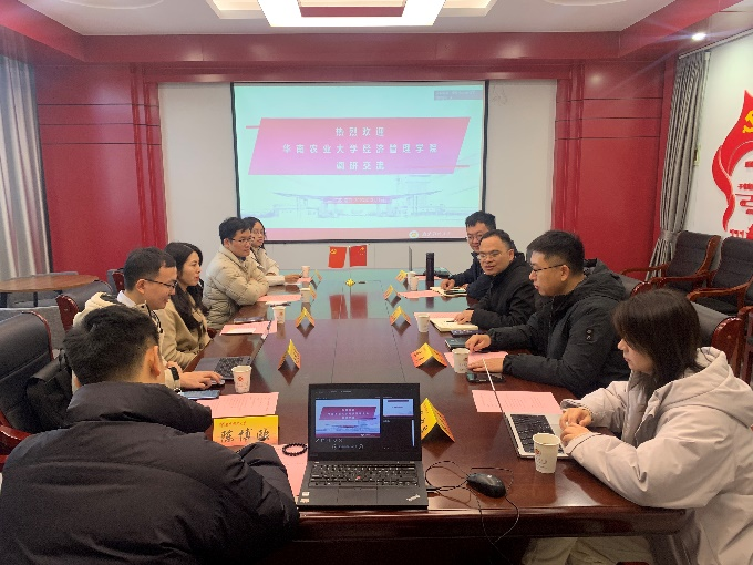 12月1日上午,华南农业大学经济管理学院经济与贸易系主任李琴教授、文乐副教授、赵纯凯副教授、苏柳方副教授一行来星空官网调研交流,座谈会在星空官网329会议室举行。星空官网副院长刘小峰教授、院长助理陈杰、经济系主任刘余、数字经济系主任华中昱、XK星空体育青年教师陈博欧、常雪参加座谈会。座谈会由院长助理陈杰主持。