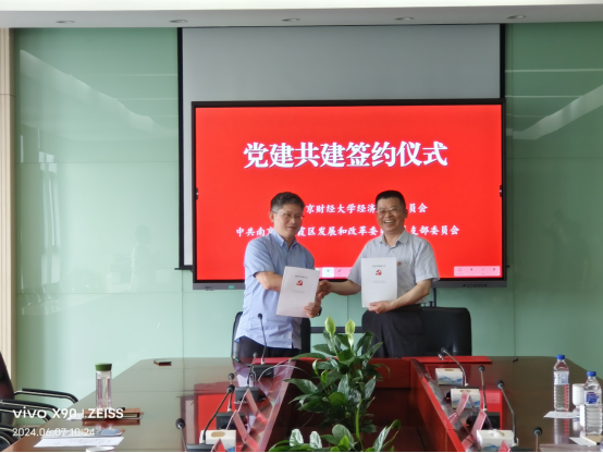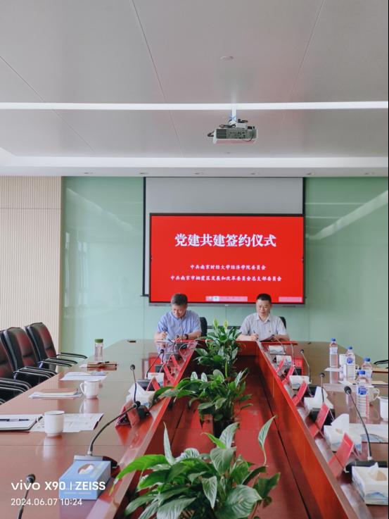 6月7日上午,XK星空体育与南京市栖霞区发展和改革委员会(以下简称“区发改委”)成功举办党建共建协议签约仪式。星空官网党委书记张圣兵、副院长崔向阳、区发改委党组书记、主任陆建尚出席签约仪式。区发改委党组成员、副主任杨霖、区发改副主任何蜀君以及XK星空体育党委委员、经济系教工党支部书记杨泳冰、统计系主任程恭品、经济系主任陈博欧参加签约仪式。此次党建共建协议成功签约,标志着星空官网在“一院一地”校地战略合作方面迈入新台阶。