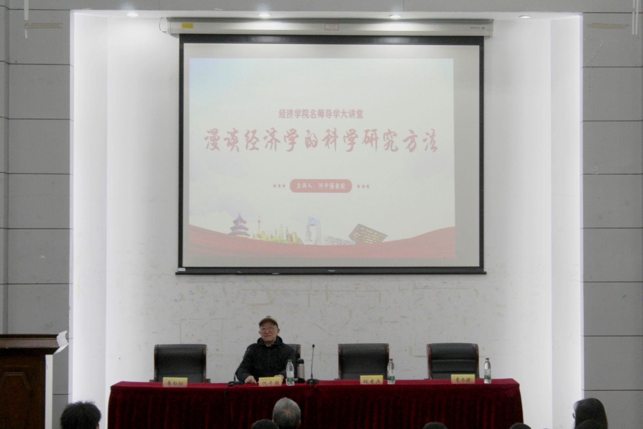 11月6日下午,星空官网何干强教授做客名师导学大讲堂,作题为“漫谈经济学的科学研究方法”讲座,XK星空体育党委书记张圣兵、党委副书记贾亦璞、副院长崔向阳出席,XK星空体育全体研一新生和部分本科生参加此次讲座。