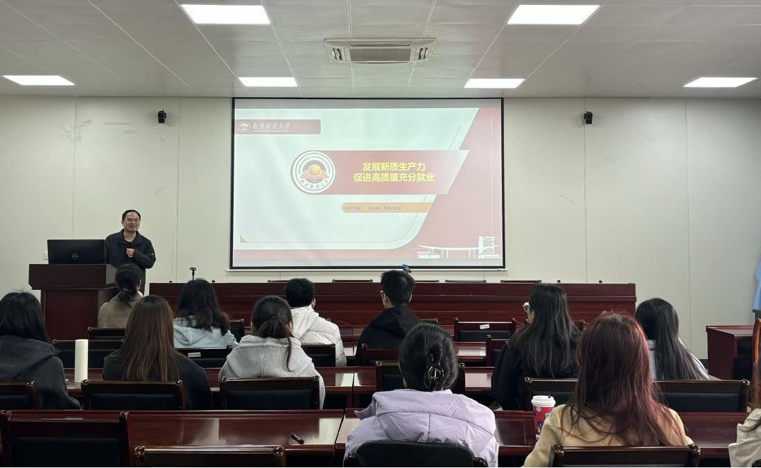11月21日上午,星空官网政治辅导员刘小峰院长在德经楼307会议室为研究生第一党支部讲授《发展新质生产力,促进高质量充分就业》的专题党课。研究生第一党支部书记周元春、学生党员参加学习。党课由研究生第一党支部书记周元春主持。