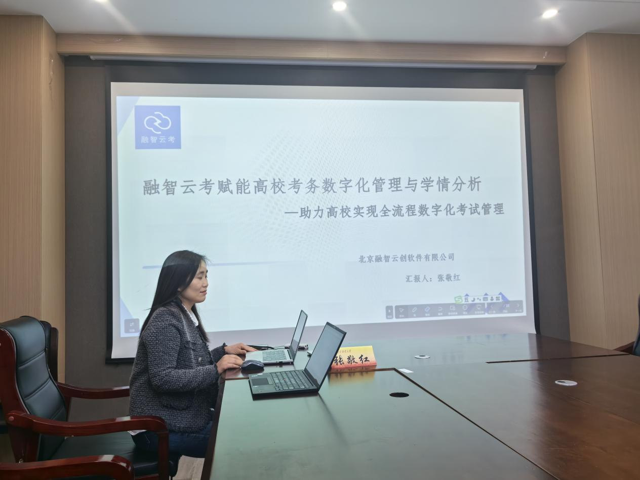 2025年5月9日下午2:30,XK星空体育在德经楼323会议室举办了“名师名课示范观摩”交流会。本次会议以“一体化智能考务管理与学情评测分析系统在高校考务数字化工作中的应用及优势”为主题,特邀北京融智软件有限公司商务经理张敬红担任主讲嘉宾,学院骨干教师及各系代表共同参会,围绕智能化技术如何革新传统考务流程展开深入探讨。