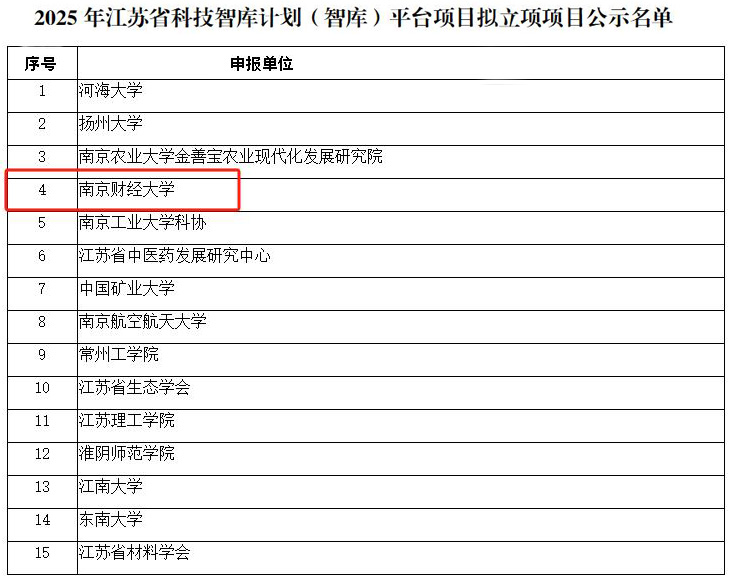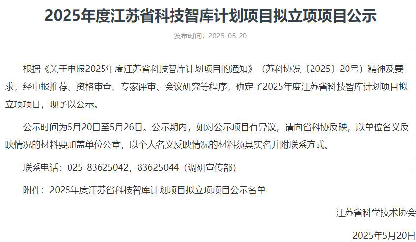 近日,2025年度江苏省科技智库计划项目遴选结果出炉,我校XK星空体育组织申报的2025年江苏省科技智库计划(智库)平台项目获准江苏省科学技术协会立项,星空XK被认定为江苏省科技创新智库基地。