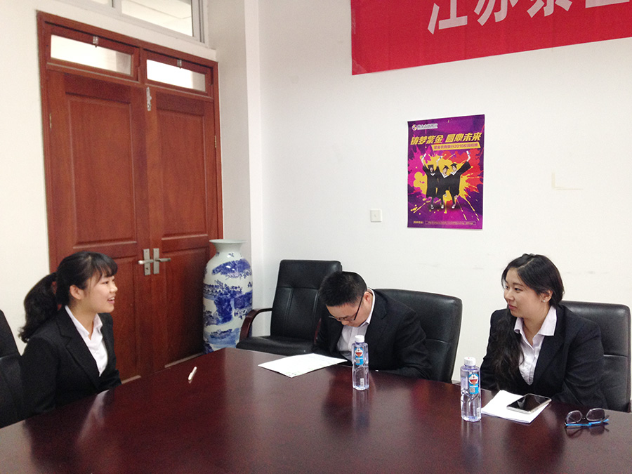 招聘会伊始,来自紫金农村商业银行培训的主管余果就企业文化、招聘岗位、招聘会流程及具体事项做了详细的介绍。宣讲会后,由银行工作人员现场接收简历并进行面试。在学生们介绍各自的学习与工作状况时,面试官与同学们亲切交谈,并向同学们介绍了企业的基本情况与工作要求。