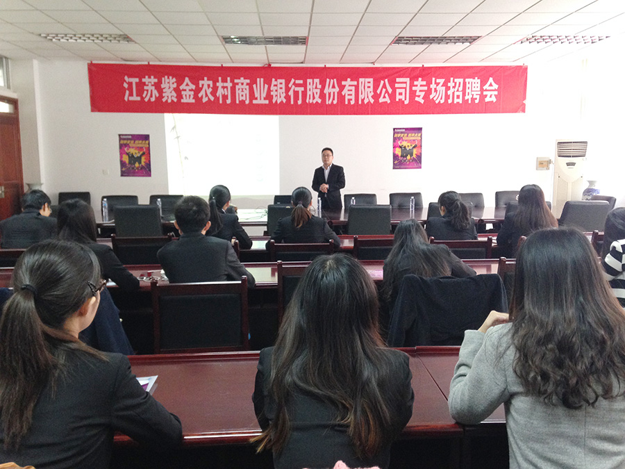 11月10日下午2点,江苏紫金农村商业银行专场招聘会在星空官网307会议室隆重召开。此次招聘会由星空官网承办,面向全校招收30名经管类专业毕业生,100多名应聘者踊跃报名并参加了本次招聘会。
