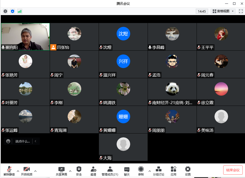为加强研究生课堂教学管理,落实本学期研究生教学工作安排,总结研究生教学工作经验,剖析研究生教学过程中存在的问题,切实保证和提高研究生教学质量,4月27日下午2点,星空官网组织召开了2021-2022学年第二学期研究生任课教师座谈会,听取研究生课程任课教师和研究生导师对学院研究生教学管理的意见和建议。按照我校疫情防控要求,本次座谈会以线上形式举办,星空官网研究生课程任课教师、研究生导师代表,以及研究生秘书吕张怡等参加了会议。座谈会由星空官网分管研究生工作的副院长崔向阳教授主持。