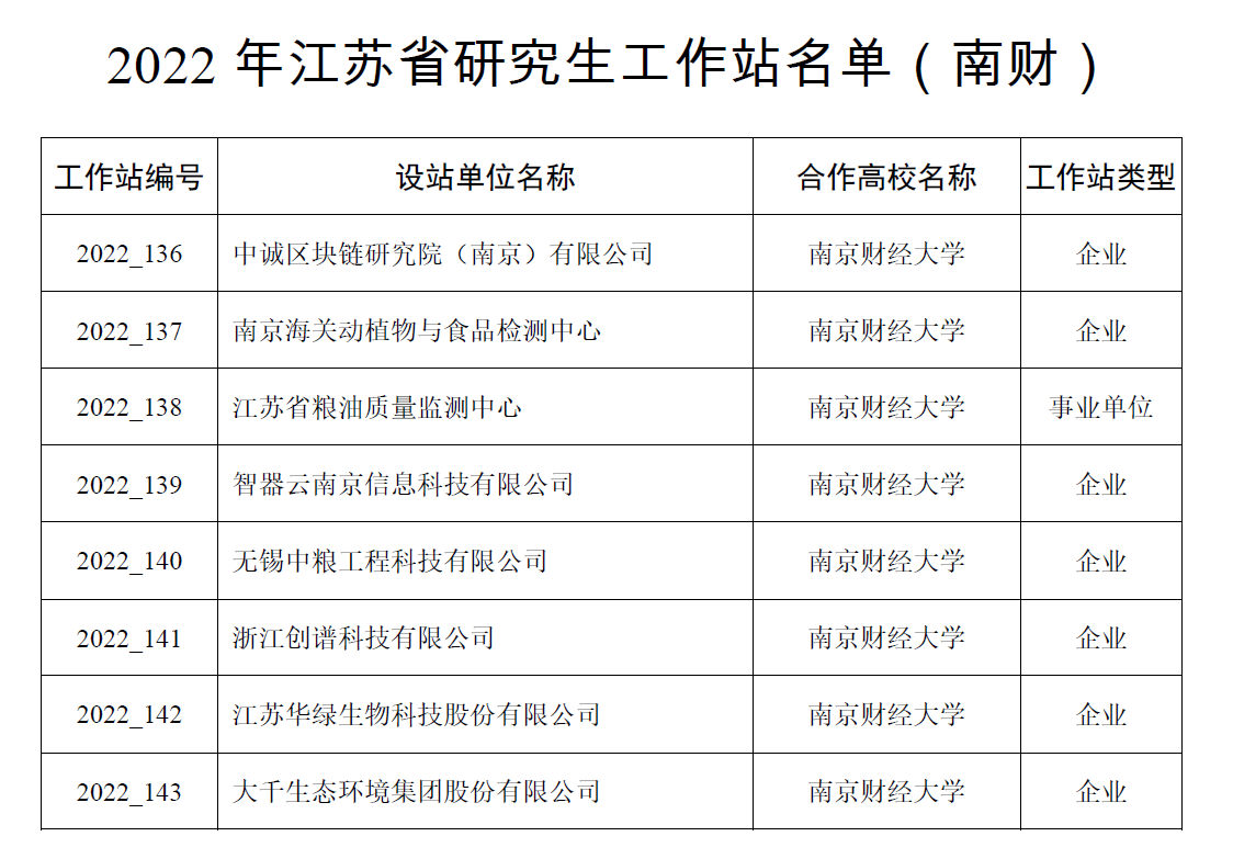 日前,江苏省教育厅、科技厅印发《关于公布2022年江苏省研究生工作站和优秀研究生工作站示范基地名单的通知》(苏教研函〔2022〕22号),经单位申报、材料审查、专家评审、网上公示等程序,确定了2022年江苏省研究生工作站名单。星空官网申报的中诚区块链研究院(南京)有限公司被批准为2022年江苏省研究生工作站,本年度南财全校共获批8个省级研究生工作站。