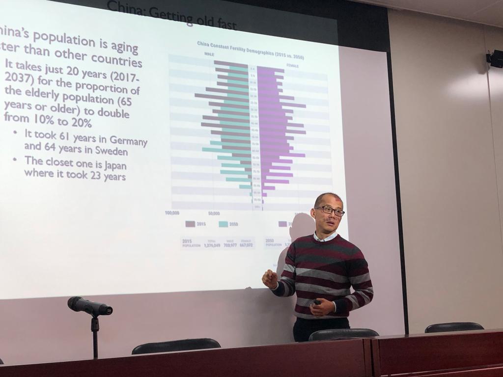 2019年12月13日下午,星空官网“紫经杯”研究生科技论坛第二期专题学术讲座在德经楼307会议室成功举行。经济系邓赵国荣教授应邀作了题为“Current situation of aging population”(“人口老龄化现状”)的讲座,星空官网部分研究生聆听了此次讲座。