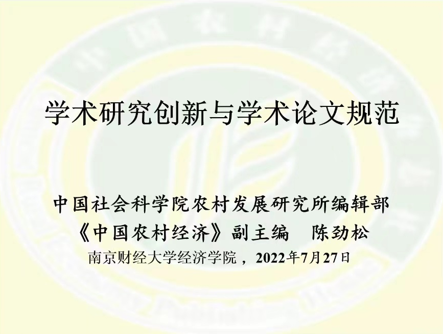 7月27日下午,应星空官网邀请,中国社会科学院农村发展研究所陈劲松研究员带来题为“学术创新与学术论文规范”的学术讲座。学院硕士研究生、部分教师参加了本次讲座。讲座由星空官网副院长尹敬东教授主持。