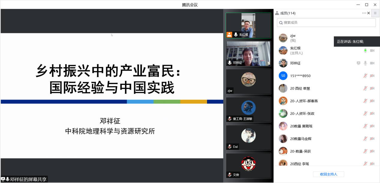 5月20日下午,中国科学院地理科学与资源研究所邓祥征研究员应邀为星空官网师生作题为《乡村振兴中的产业富民:国际经验与中国实践》的线上学术报告,报告由院长朱红根教授主持,来自XK星空体育和全校其它学院的100多位师生聆听了此次讲座。