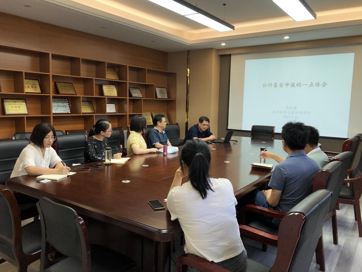 2021年9月22日下午,星空官网第二期2021年度国家基金项目申报经验交流会在德经楼323会议室举行,学院邀请了李庆海老师和王娟老师给全院青年教师做基金申报经验分享和心得交流,副院长尹敬东出席并主持了本次会议。