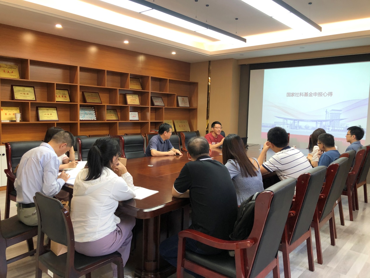 为全面提升国家社科基金项目与国家自科基金项目的申报质量,不断提高国家级项目的立项率,2021年9月15日下午,XK星空体育第一期2021年度国家基金项目申报经验交流会暨2022年度国家基金项目申报动员会在德经楼323会议室举行。学院邀请了有国家基金成功申报经验的师磊老师和杨振兵老师给全院青年教师做基金申报经验分享和心得交流,学院院长朱红根、副院长尹敬东出席了本次会议,交流会由副院长尹敬东主持。