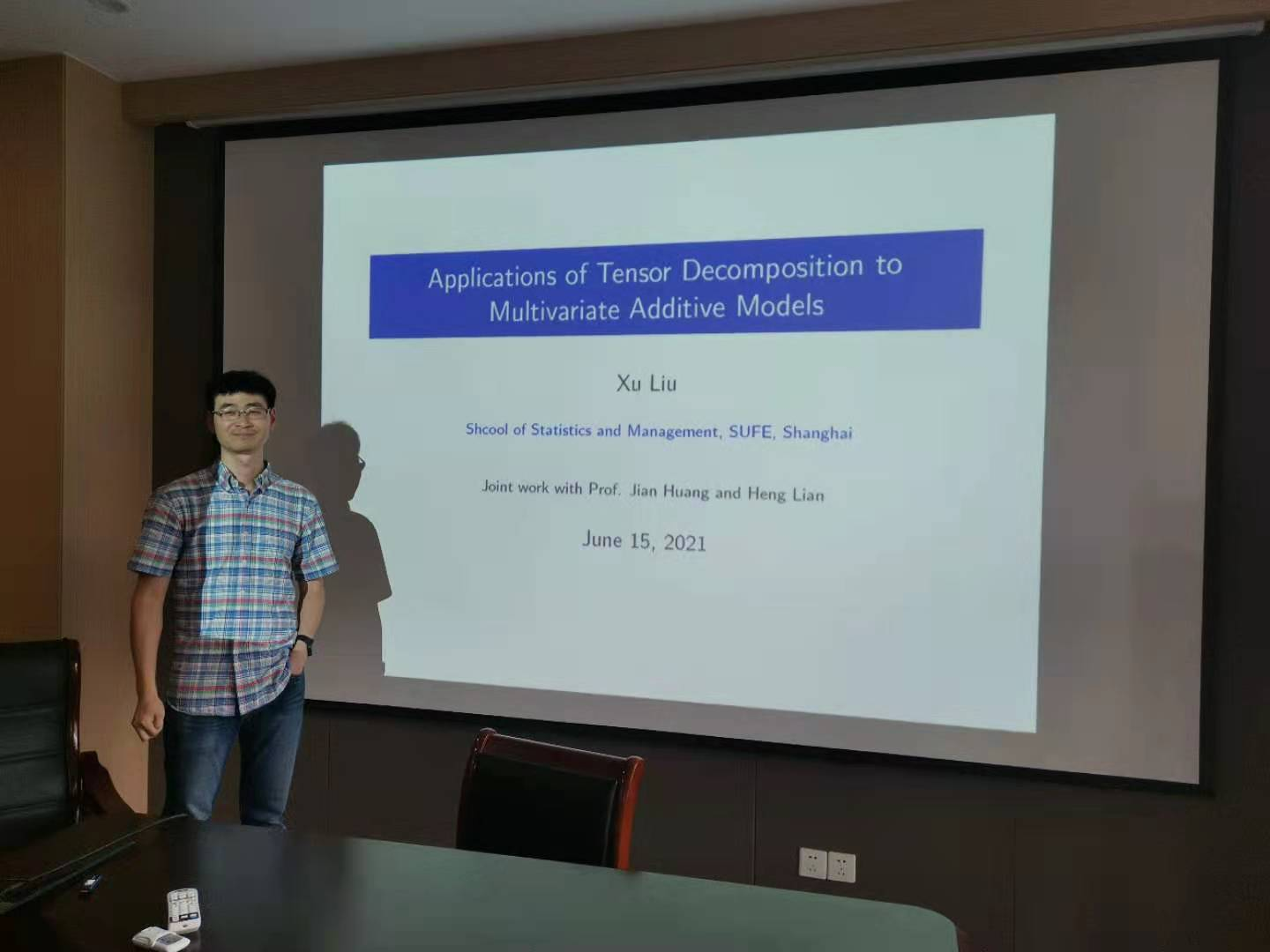 XK星空体育特邀上海财经大学副教授刘旭博士,于2021年6月16日下午14:00在德经楼323会议室,作有关多元加性模型的张量分解应用的报告。报告会由尹敬东副院长主持,陈海清、陈冉冉、史兴杰、穆燕等老师以及研究生参加了会议。