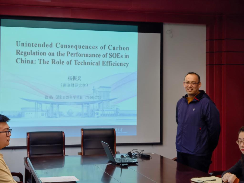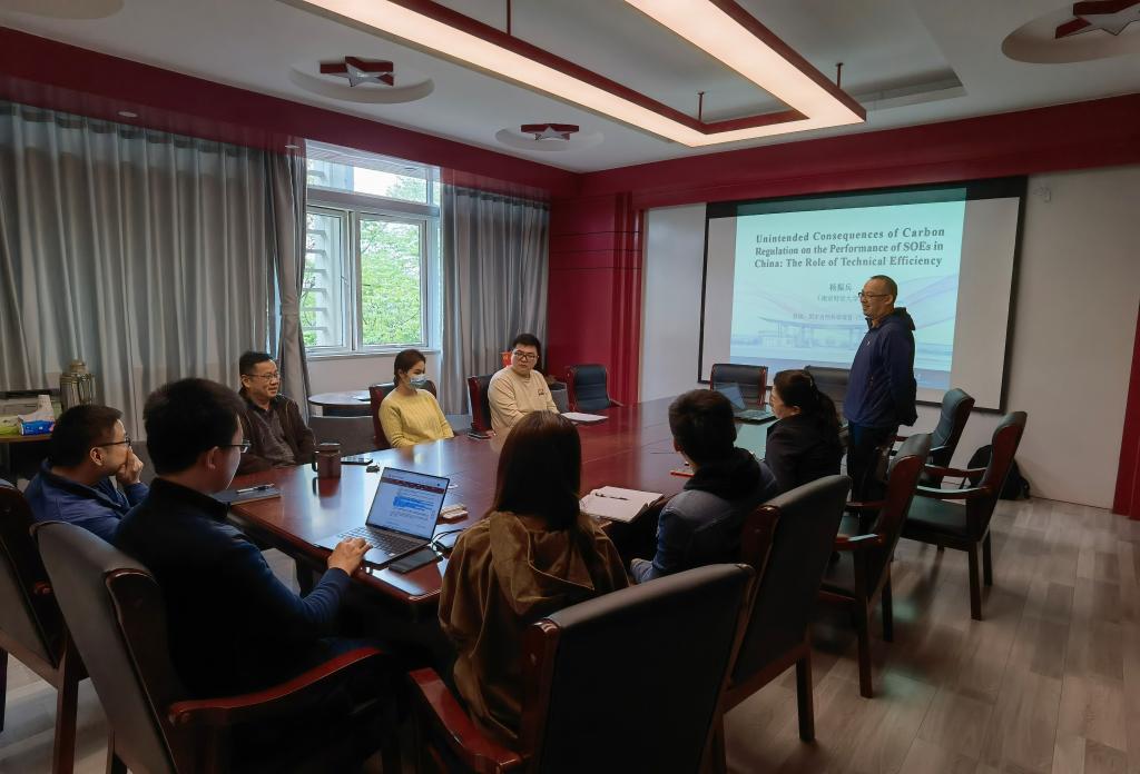4月21日下午,XK星空体育在德经楼329会议室成功举办了本学期第二期双周学术论坛。本期论坛由经济系杨振兵副教授带来题为《Unintended consequences of carbon regulation on the performance of SOEs in China: The role of technical efficiency》的学术讲座。